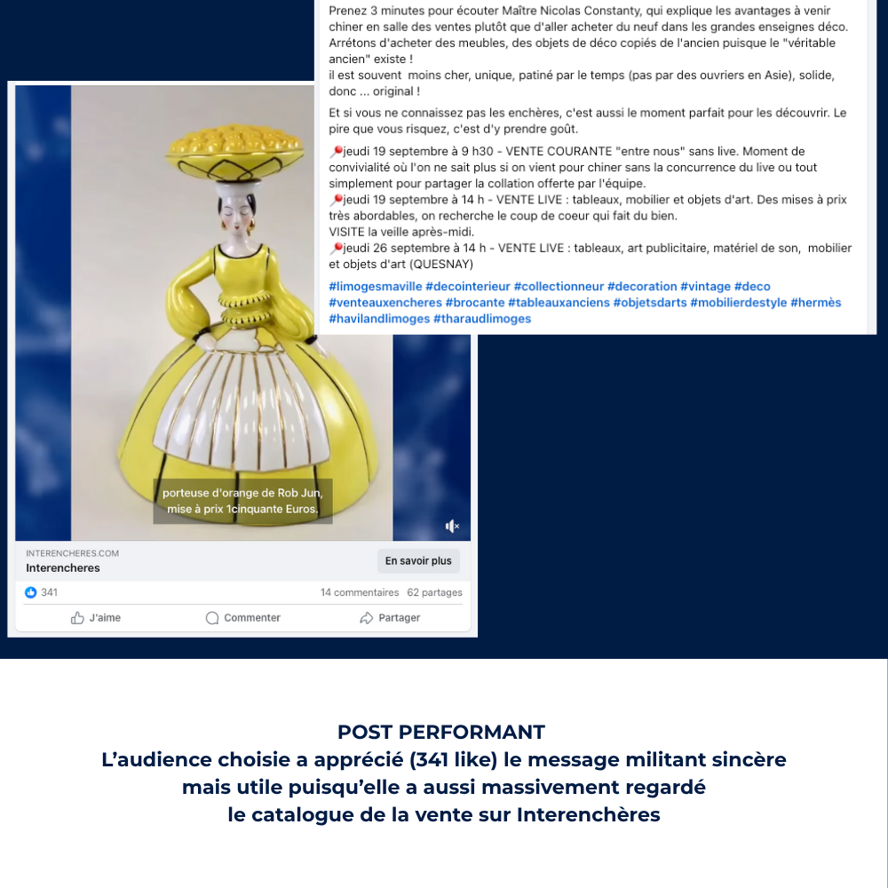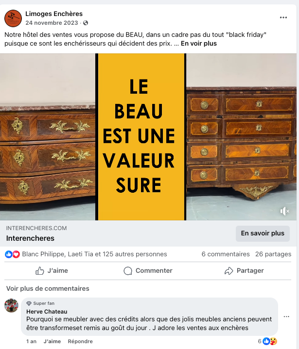 Des milliers d’internautes cliquent vers le catalogue d’une vente. Une modeste communauté de quelques centaines de followers a dépassé en 4 ans les 10 000 intéressés par l’activité.